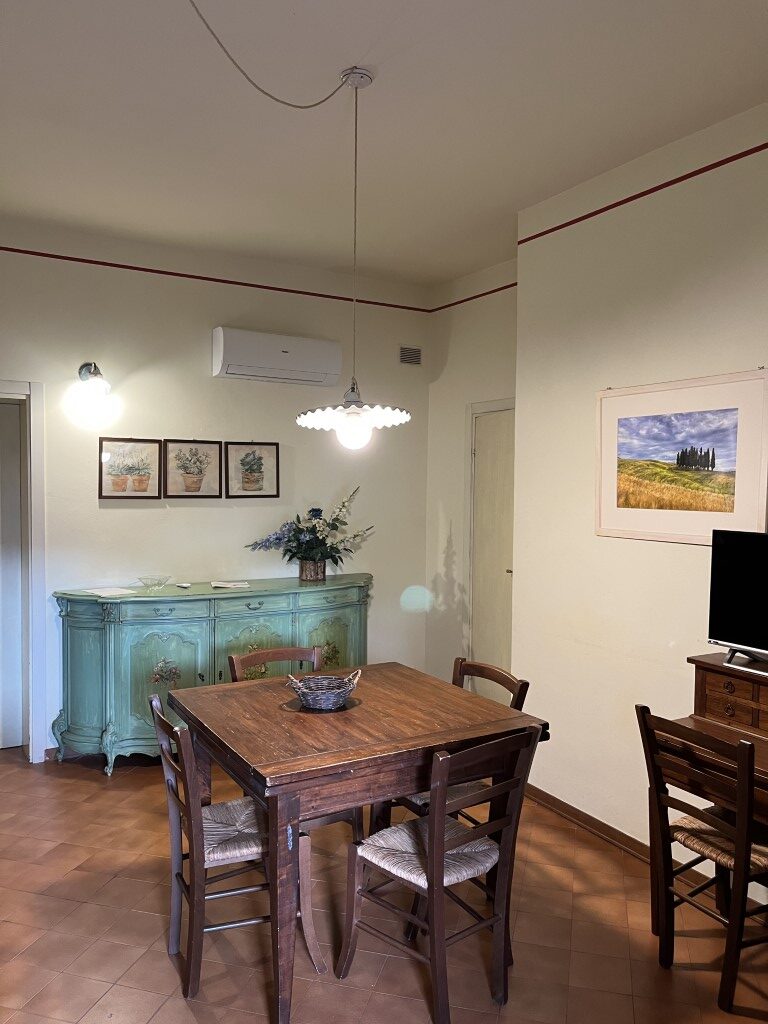 Dalle camere di questo appartamento si può godere la vista della campagna Toscana unico nel suo genere, l ‘orizzonte si perde da un lato fino ai confini con la provincia di Firenze e dall’ altro fino ai confini con la provincia di Siena.